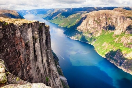 座落於宛如夢境的峽灣盡頭——挪威兩座被聯合國教科文組織列為世界遺產之一的峽灣之一蓋倫格(Geiranger),完美詮釋了北歐海岸小鎮的純粹之美。站在七姊妹瀑布的彩虹水霧之中,感受自然的壯闊;登上蓋倫格天空步道,彷彿行走於雲端,俯瞰整個峽灣的絕美景致。順著石階攀登,便能走入由融雪傾瀉而成的飛瀑背後;或騎乘電動自行車攀上山嶺、穿越翠綠農場;亦可乘快艇或輕划皮艇,深入那片湛藍水域。無論行至何處,這片大地都讓人感受到大自然的神聖與寧靜——雪峰、峽灣與豐饒山谷交織成一首獻給地球的頌歌。