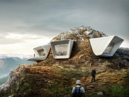 科隆普拉茨山峰上,一座訴說著阿爾卑斯山脈故事的博物館,恰如其分地紮根在山頂。透過Zaha Hadid的巧思,避免多餘的人工侵擾這般雄偉,嚴選建材使博物館就像顆巨石鑲嵌在那,鬼斧神工地融入環境。眼觀四面,無不被霸氣的群山所震懾。發想者Reinhold Messner描述博物館如同他童年以來的鏡子,視登山為人生的他,除了介紹山脈歷史與傳統登山發展,更著重世界對於登山的貢獻,盼望開闢人類對自然的感受。